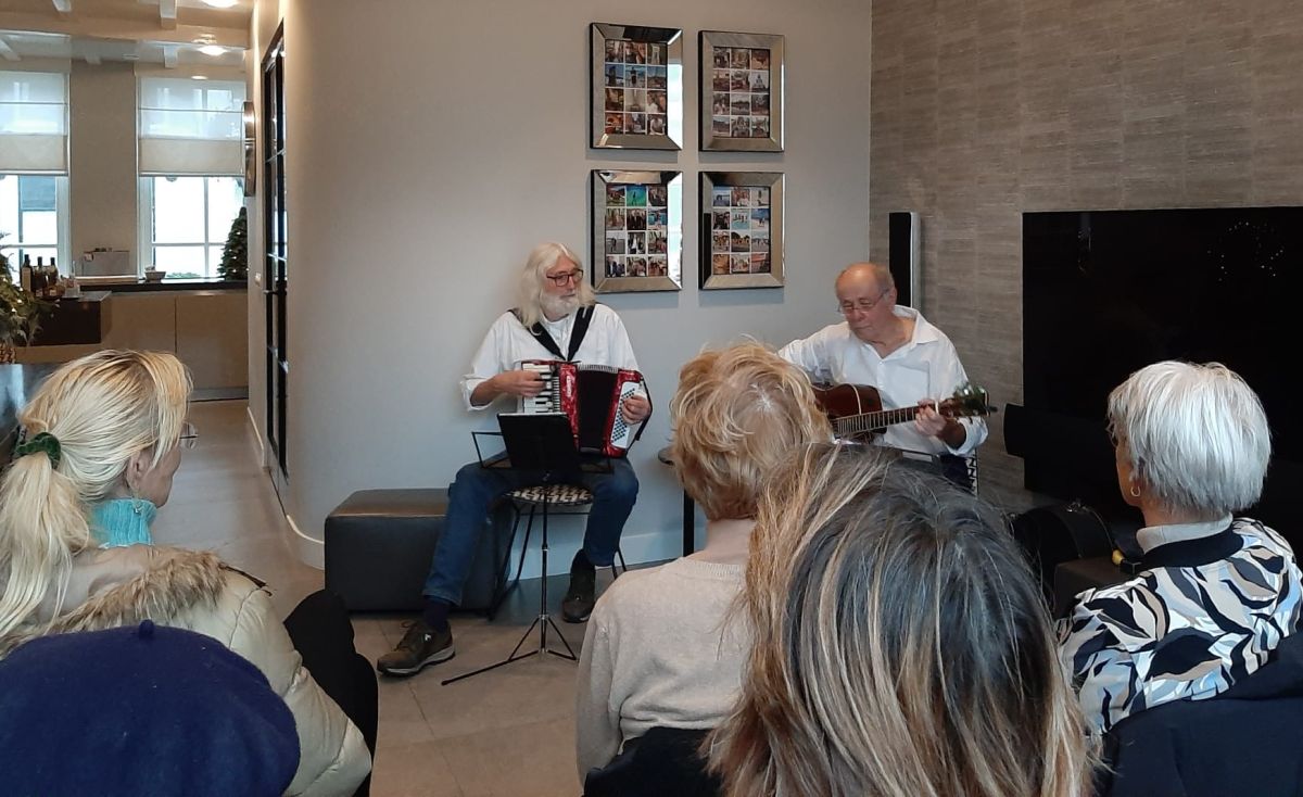 Ook in 2025 speelt Hoed en de Rand de hele middag ergens in een huiskamer de Voorstraat in Noordwijk tijdens de Muzikale Kerstwandeling.
